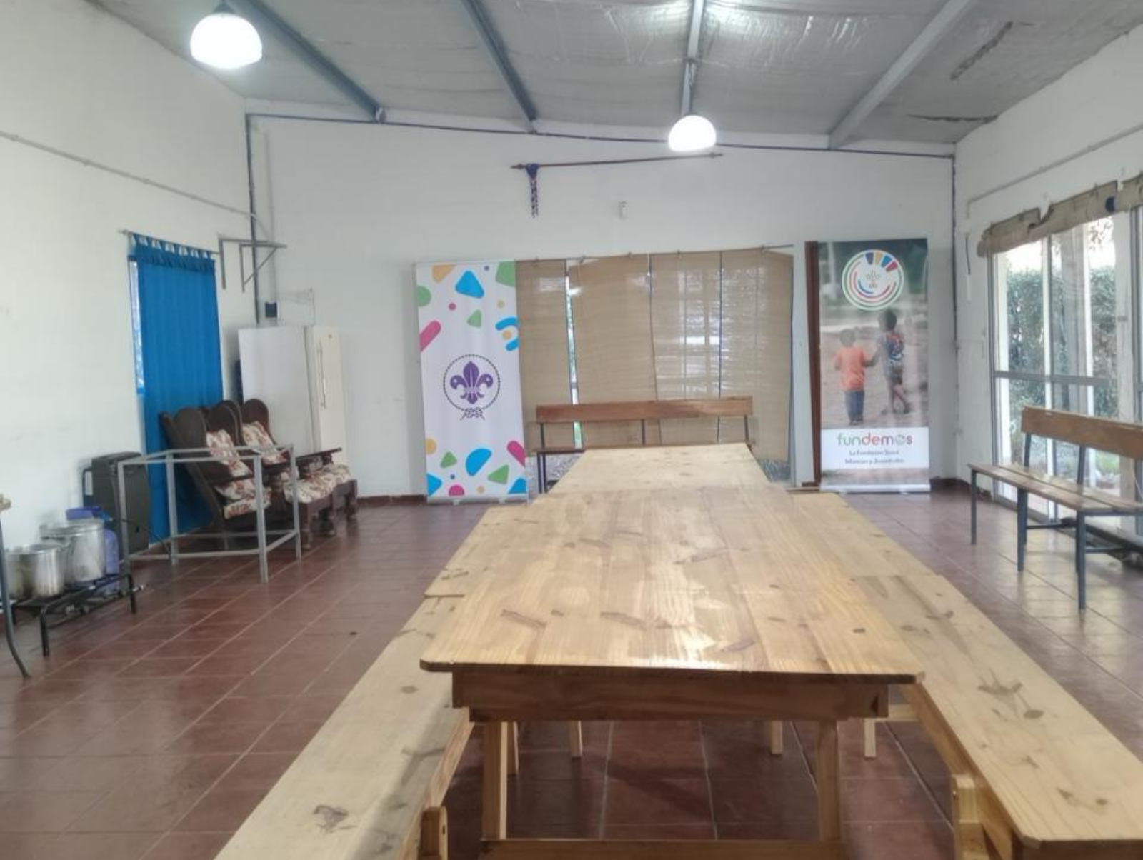 Nuestro quincho está equipado con mesas, sillas y un amplio espacio para cocinar.